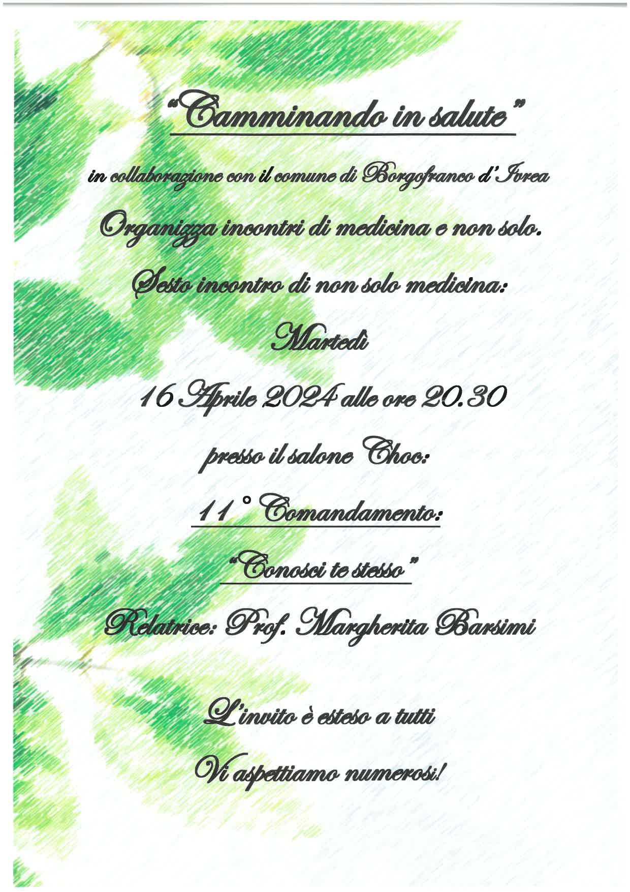 Sesto incontro di medicina presso il Salone Choc- Martedi 16 aprile ore 20.30.