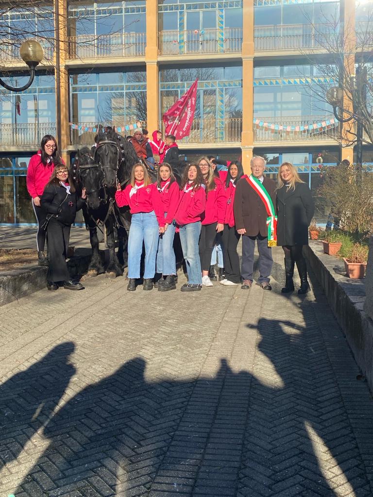 Il Carro dei Coscritti di Borgofranco d'Ivrea davanti al Municipio prima della consegna delle costituzioni in sala Consiliare avvenuta il 20/01/2024.