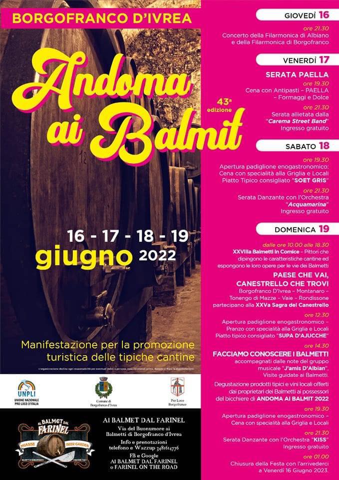 Dal 16 al 19 giugno si svolgerà la tradizionale Festa dei Balmetti organizzata dalla Pro Loco di Borgofranco d’Ivrea.
