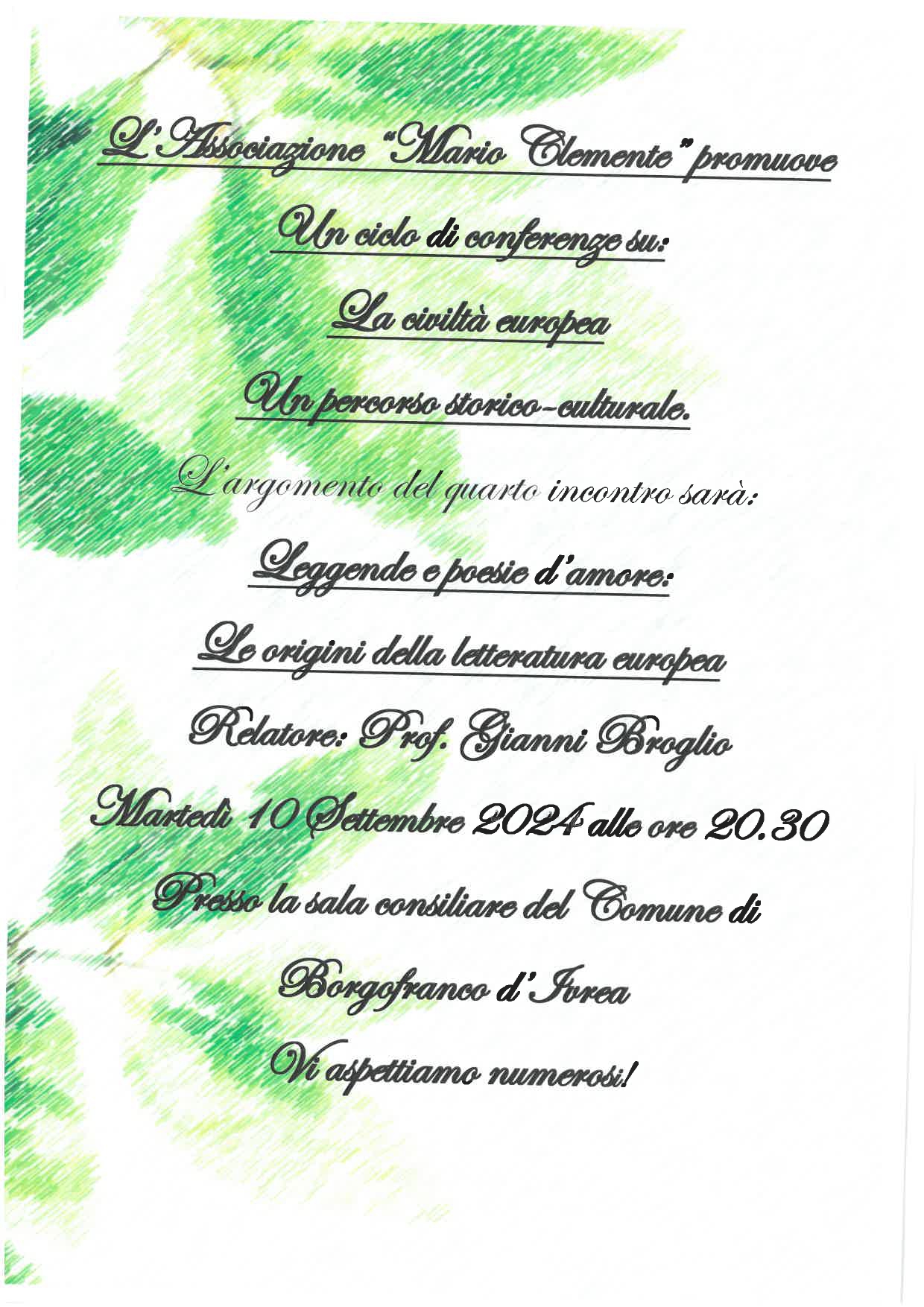 Conferenza: "Incontri e poesie d'Amore: le origini dela letteratura europea". A cura dell'Ass. "Mario Clemente"