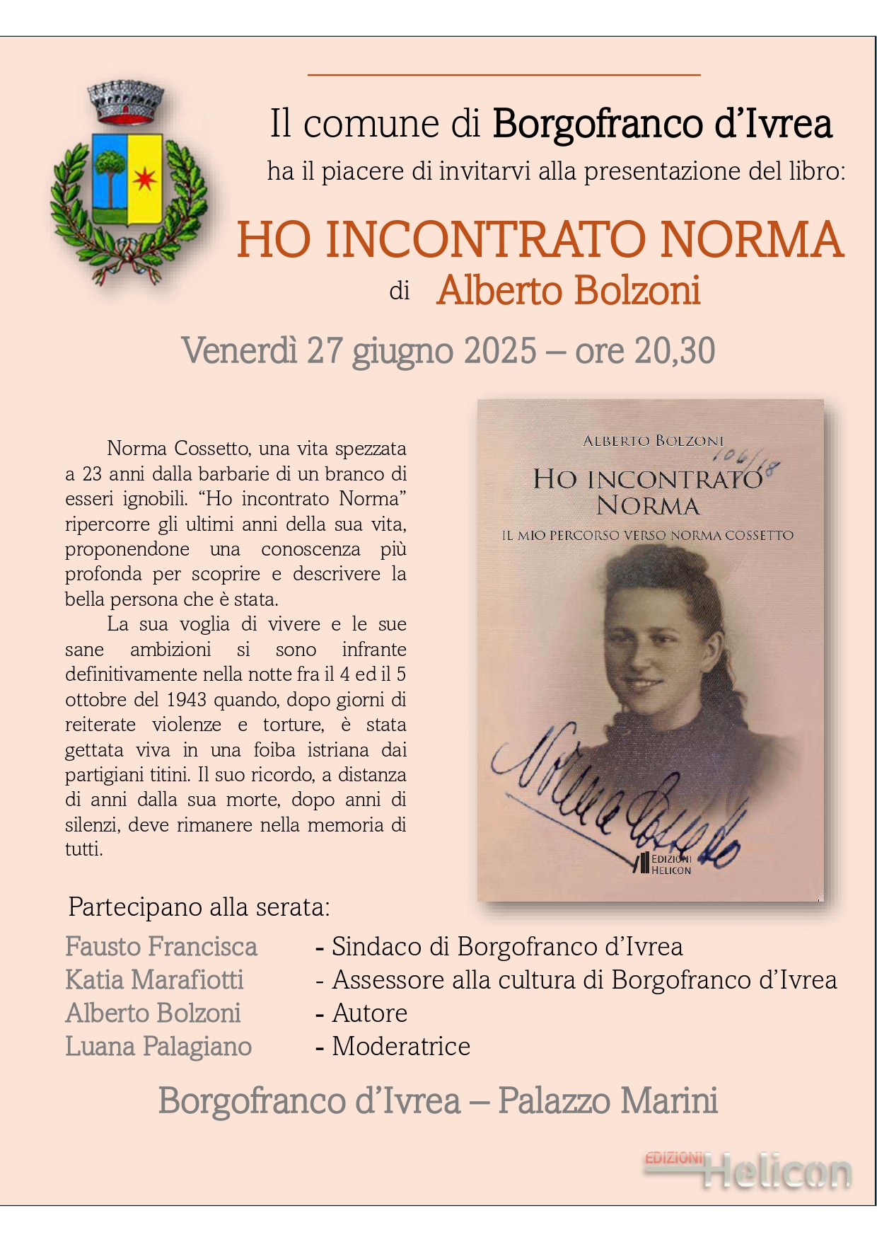 presentazione del libro: "Ho incontrato Norma" di A. Bolzoni
