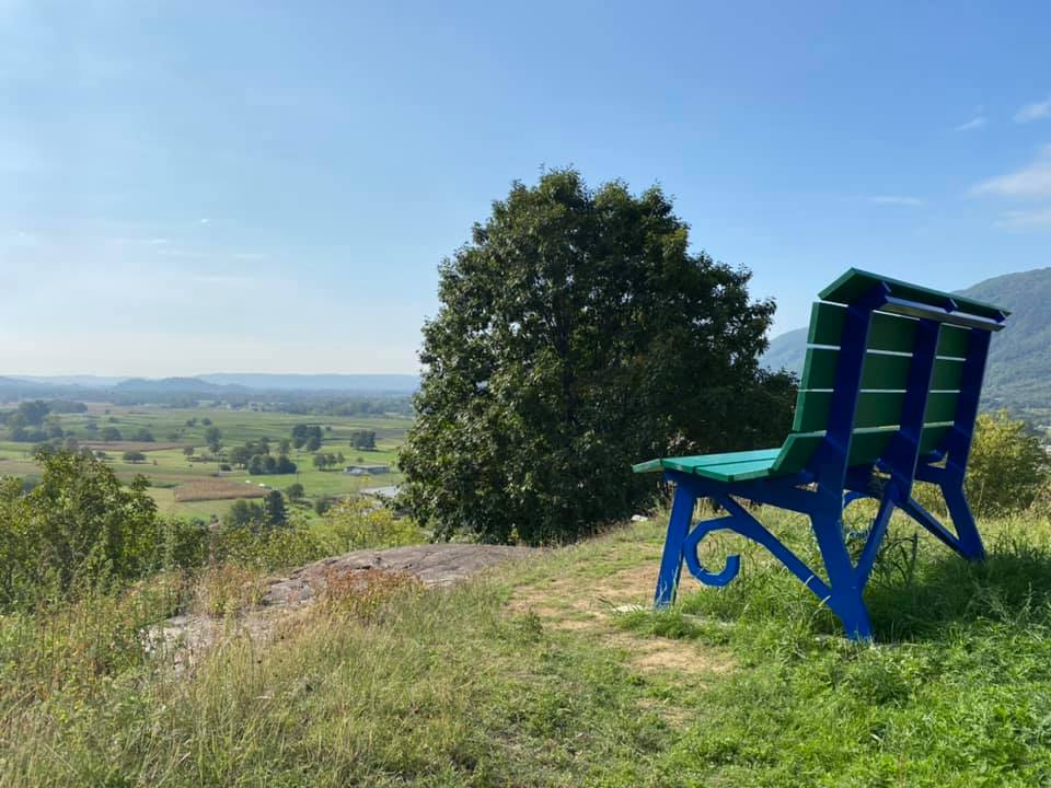 La panchina gigante verde-blu, numero 184, del territorio di Borgofranco d’Ivrea è collocata in Località Montebuono in un punto panoramico e contemplativo raggiungibile con una breve passeggiata a piedi tra le vigne.