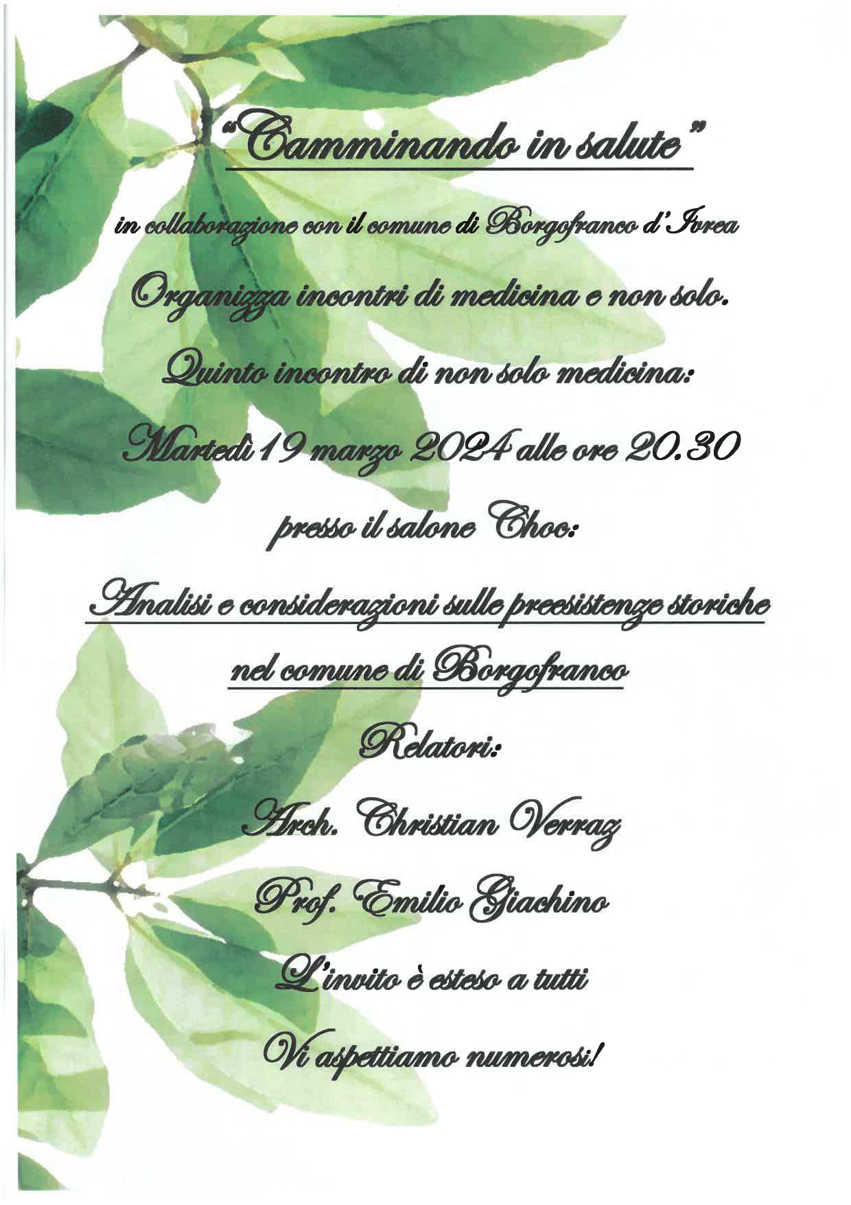 Incontro del ciclo "Analisi e considerazioni sulle preesistenze storiche nel comune di Borgofranco" Martedi 19 Marzo ore 20.30 presso il salone Choc. Locandina in allegato.
