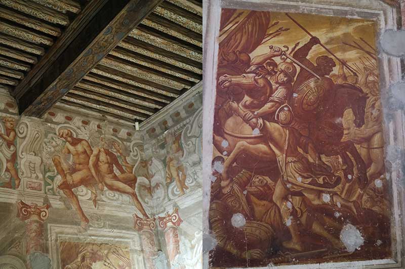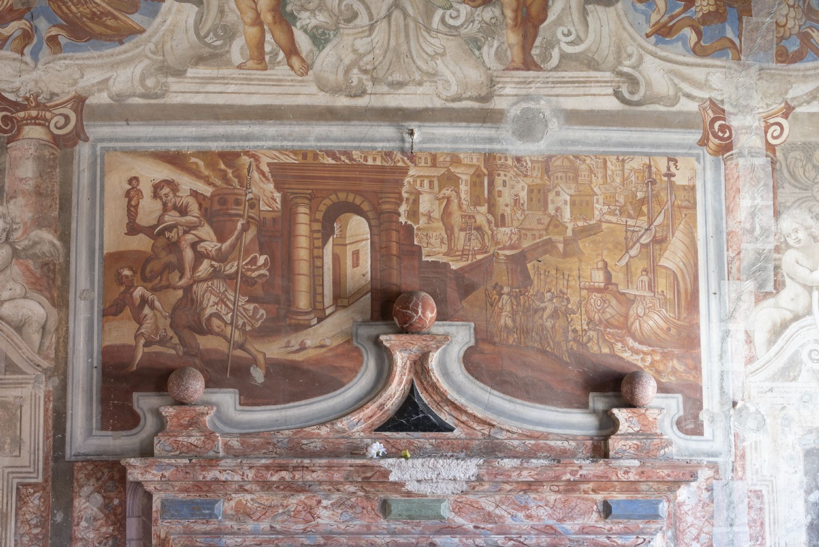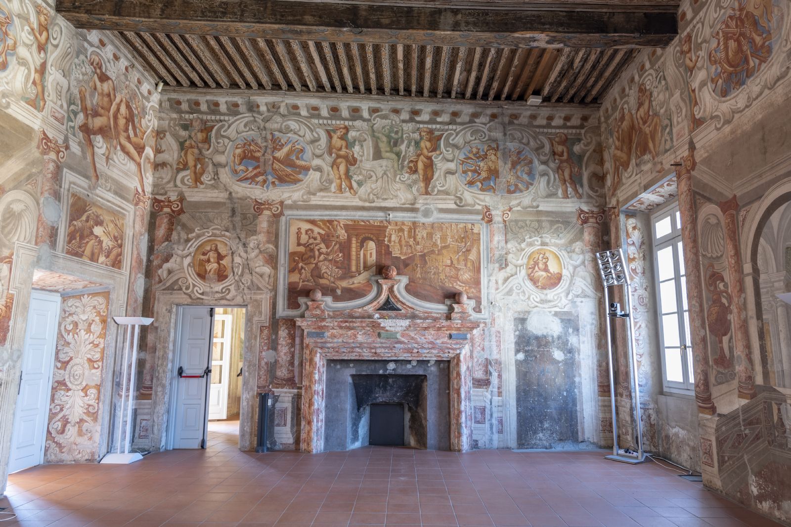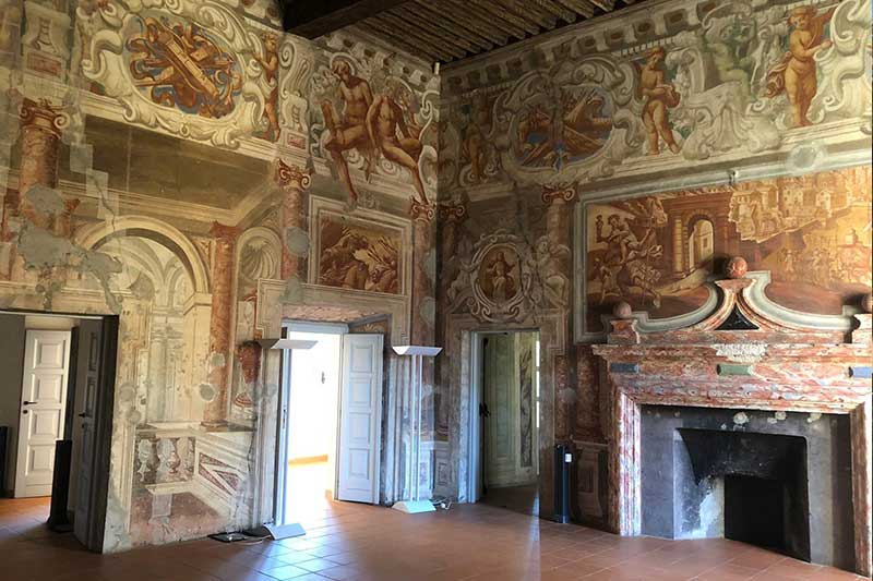 Il grande Salone di Rappresentanza presenta un soffitto ligneo con nodi sabaudi che sovrasta da altre cinque metri le pitture parietali che inquadrano un elegante camino in stucco. Sopra il camino è dipinto a monocromo l'incendio di Troia con la fuga di Enea. Sulle pareti sono dipinti sempre a monocromo scene di battaglia con guerrieri a piedi e a cavallo.