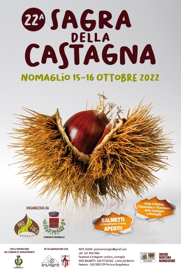 La Proloco di Nomaglio organizza la 22° Sagra della Castagna, Sabato 15 e Domenica 16 Ottobre. Per tutti i dettagli potete consultare la pagina facebook della Proloco.