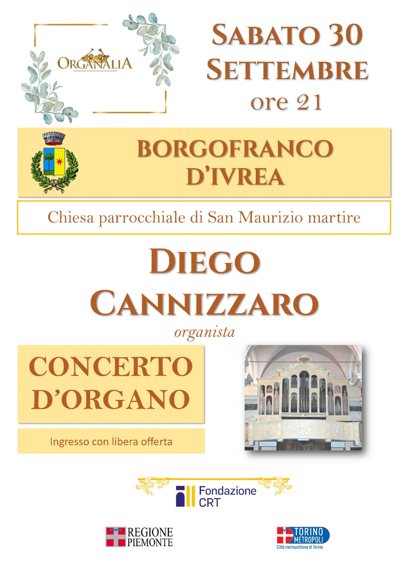 Sabato 30 Settembre ore 21.00 concerto d'organo a Borgofranco d'Ivrea presso la chiesa parrocchiale.